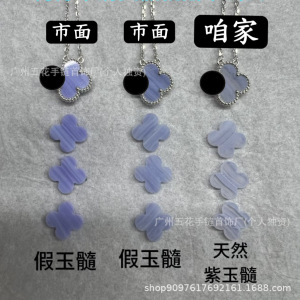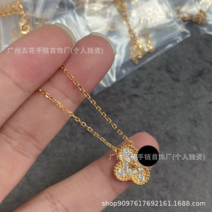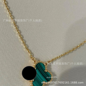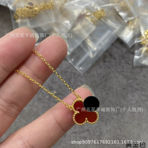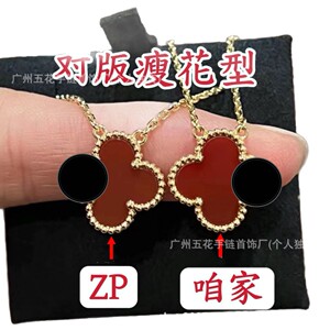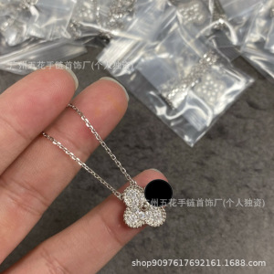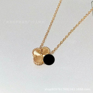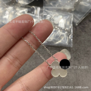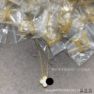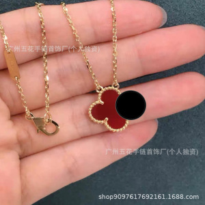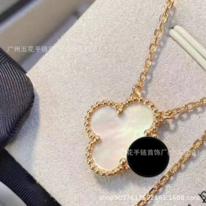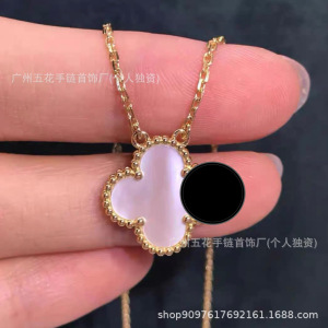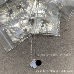 V金高版本四叶草项链纯银单花天然贝母玛瑙吊坠双面幸运草锁骨链