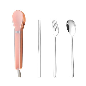 304不锈钢勺叉筷三件套学生开学筷子勺子套装上班族便携餐具套餐