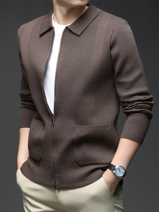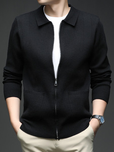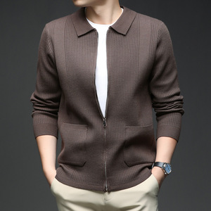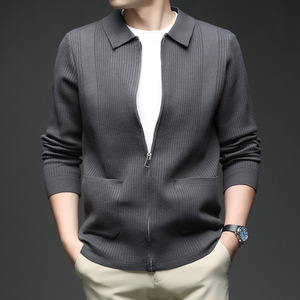 直播针织开衫毛衣外套男士轻奢高级感春秋季韩版纯色翻领拉链上衣
