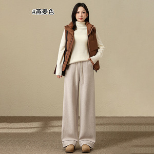 羊绒裤子女2025秋冬季新款高腰垂感糯米裤宽松休闲直筒拖地阔腿裤