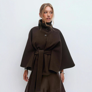 2025秋冬欧美跨境新款立领绑带夹克外套舒适宽松系带收腰上衣女