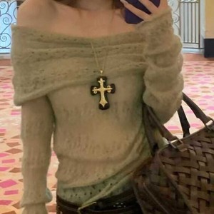 欧美跨境树脂十字架吊坠项链女复古简约ins锁骨链小众高级感饰品