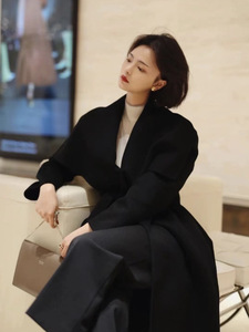 迦GIA达DA红宝石ruby双面山羊绒大衣绵羊毛呢披肩海军领长款外套