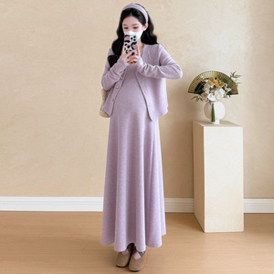 现货实拍 2025秋冬新款孕妇装大码孕妇两件套华夫格韩版孕妇套装