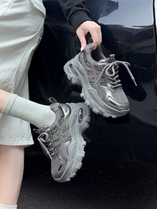 欧货水钻老爹鞋女2025秋季新款网面气垫厚底增高百搭休闲运动鞋潮