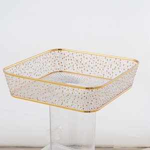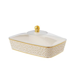 派对带盖果盘 塑料PET透明方形可叠加水果盘书籍配饰整理盒子批发
