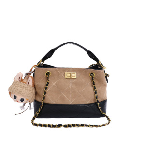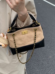 约姿磨砂通勤托特包包女2025夏季新款潮大容量拼接菱格单肩斜挎包