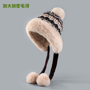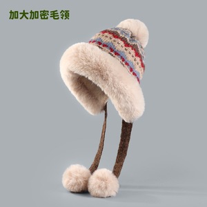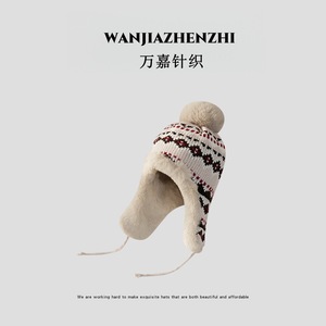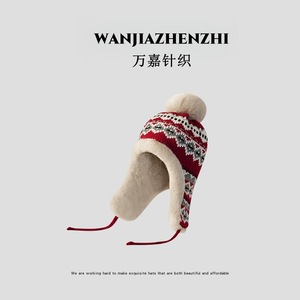 民族风雷锋帽东北冬防风耐寒毛绒帽保暖加厚护耳加绒针织毛线帽