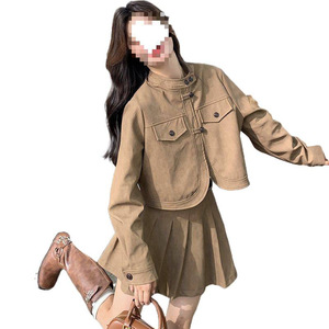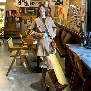 韩版复古咖色连衣裙套装女2025秋新款高级感小个子洋气减龄两件套