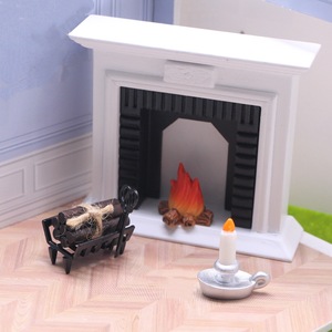 Dollhouse娃娃屋迷你白色壁炉家具配件 微缩冬日圣诞场景道具摆件
