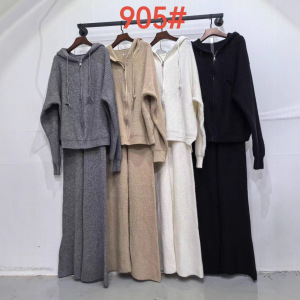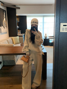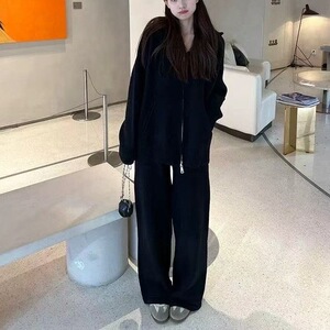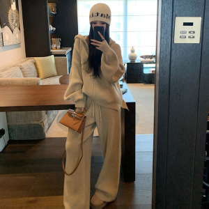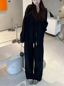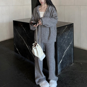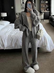 韩系纯色毛衣外套+针织阔腿裤套装女2025秋冬慵懒风减龄两件套