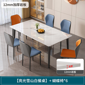 亮光12mm【雪山白】单桌+6把蝴蝶椅 其他桌面颜色备注