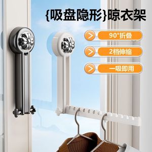 吸盘折叠晾衣架可伸缩壁挂家用阳台浴室毛巾架多功能置物架挂衣架
