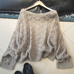 高级感镂空灰色毛衣女2025年早秋薄款慵懒风针织衫宽松上衣女百搭