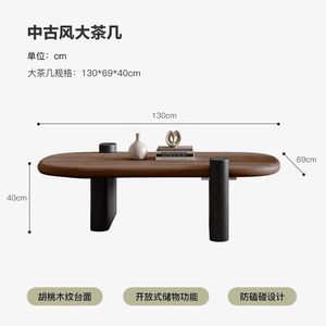 中古风茶几2025新款轻奢客厅家用实木茶几小户型民宿原木茶几