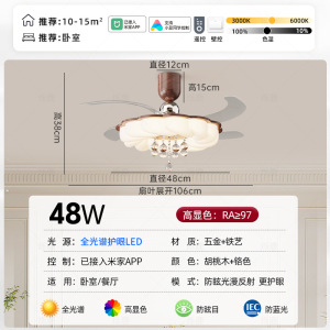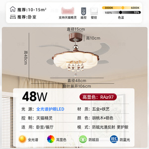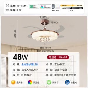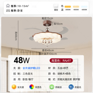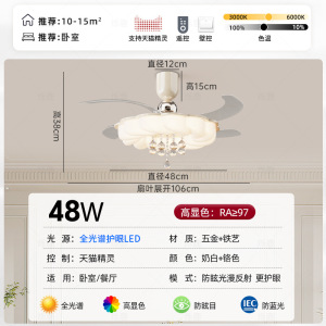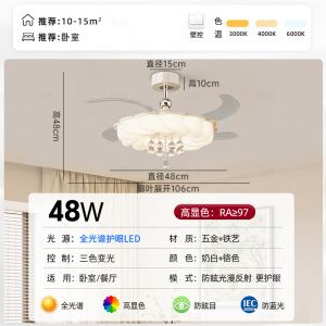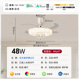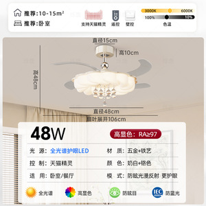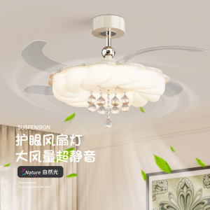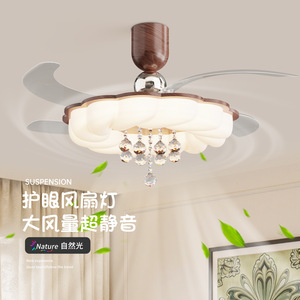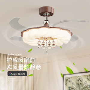 餐厅隐形风扇灯客厅卧室吊扇灯奶油风吸顶风扇灯家用变频中山灯具