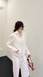 秋季新款韩版休闲时尚简约纯色净版宽松大码连帽拉链卫衣外套2313