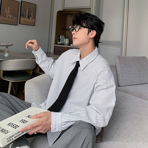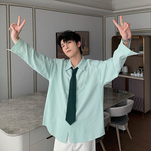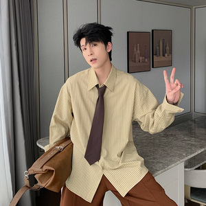 春秋季新款宽松老钱风条纹衬衫男生长袖痞帅休闲衬衣宽松百搭外套