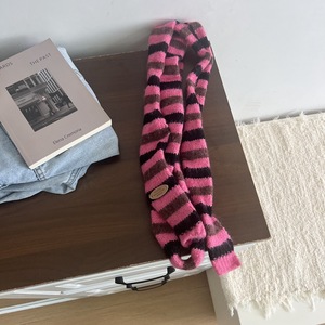 早秋冬韩国东大门条纹细窄长条小围巾女时髦千禧风腊肠针织围脖
