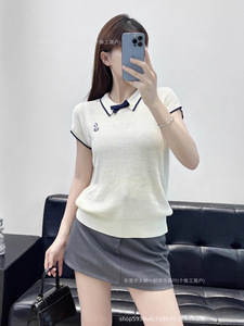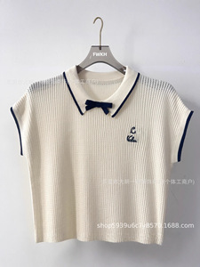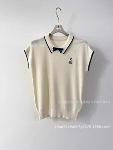 深圳南油女装25夏季新款针织无袖翻领百搭上衣蝴蝶结装饰减龄设计