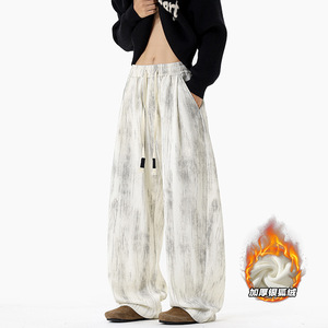 扎染蟒纹水墨印花男大码抽绳休闲裤K24033特P35 K24033J加绒特P45