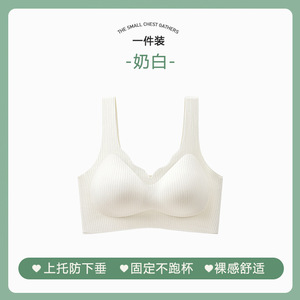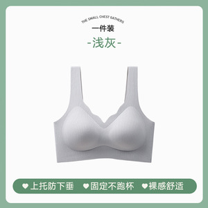 宽肩带舒适美背心式无痕内衣女无钢圈收副乳防下垂提拉薄款文胸罩