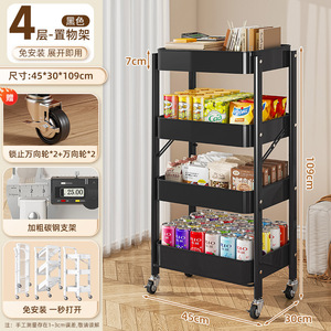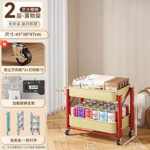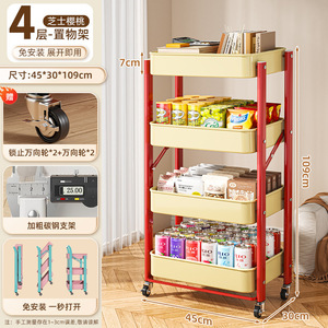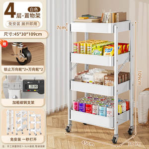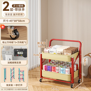 多巴胺小推车置物架多层可折叠厨房卧室移动落地书本零食收纳架子