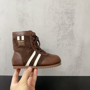 儿童洋气拼接英伦风小皮靴2025年秋冬新品男女童时尚字母德训单靴