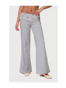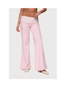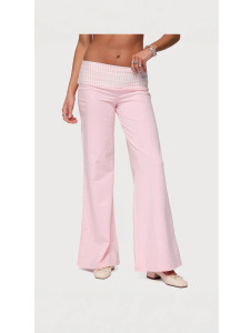 S32343款欧美跨境新品美式休闲女装反折腰长裤低腰宽松直筒裤女装