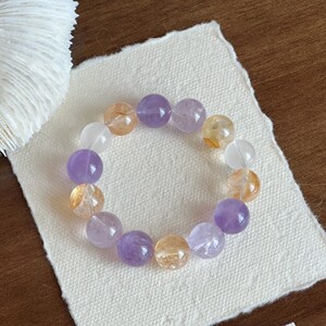 【普罗旺斯】14mm多宝水晶手串大珠子黄胶花紫水晶设计款水晶手链