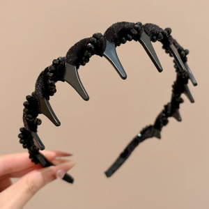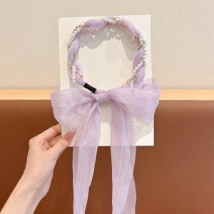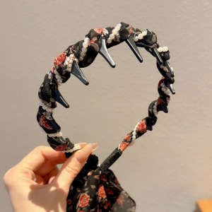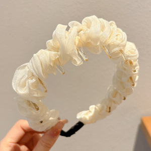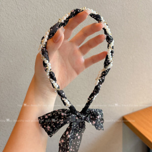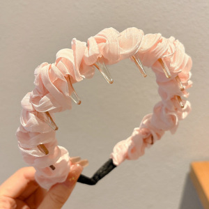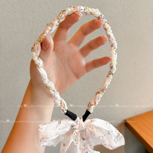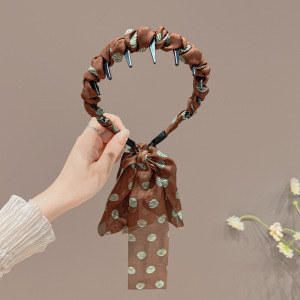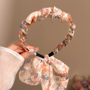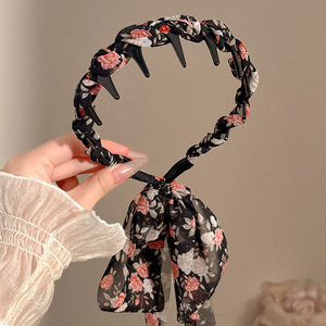 繁花飘带齿梳发箍女外出百搭高颅顶发卡复古波浪编发头箍气质头饰