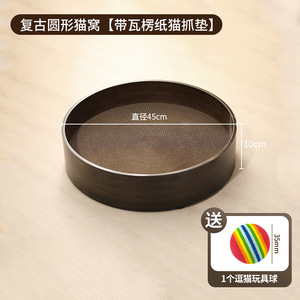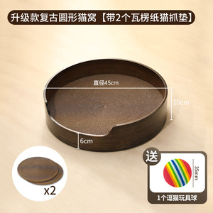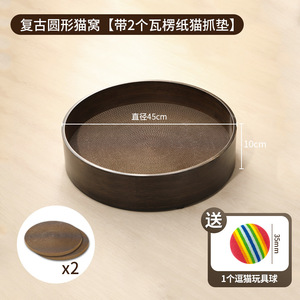 升级款茶色圆形猫窝【带2个瓦楞纸猫抓垫】