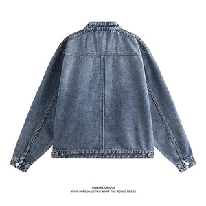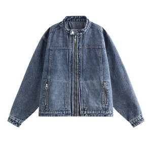 水洗立领廓形牛仔外套男款美式复古解构设计感休闲磨白工装夹克男