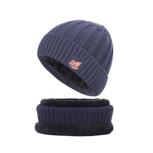 帽子男秋冬季枫叶刺绣保暖针织毛线帽帽户外骑车男士带围脖套头帽