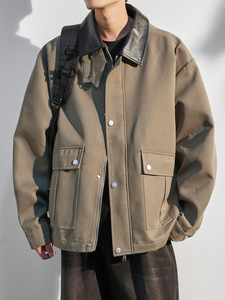 翻领夹克男士加肥加大码春秋季新款时尚百搭潮牌痞帅美式上衣外套
