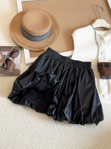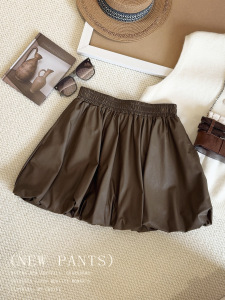 时尚pu皮裙花苞短裙女半身裙秋季新款百搭显瘦高腰A字裙蓬蓬裙子