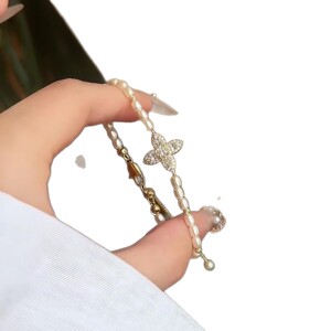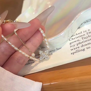 超闪四芒星珍珠手链高级感气质精致百搭小众独特简约百搭手饰品