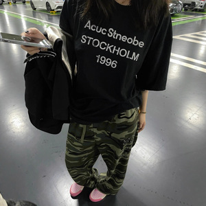 顶货!AcAcucStneob春夏1996亚麻薄款短袖复古脏染百搭情侣T恤