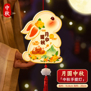 中秋节灯笼手工diy制作材料包儿童手提发光木质框架古风兔子花灯
