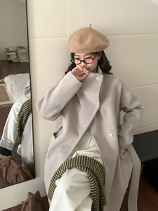双面羊绒大衣女加长加厚100澳毛系腰带大款毛呢外套简约高档大衣