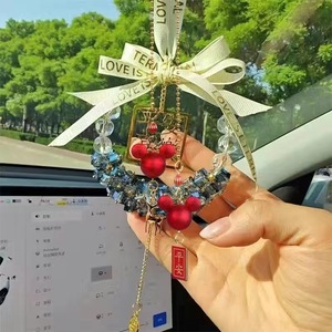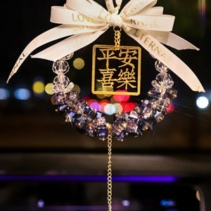 网车挂件车内挂饰后视镜平安喜乐新款手工汽车吊坠红水晶2025