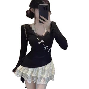 纯欲风套装裙女2025新款春秋穿搭一整套蕾丝边上衣设计感两件套