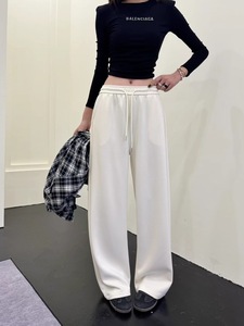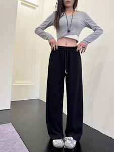 秋季慵懒风宽松休闲时尚纯色休闲抽绳运动裤直筒阔腿卫裤长裤2313