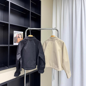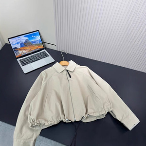031881 秋季新款慵懒风落肩袖设计翻领拉链抽绳短款夹克外套女