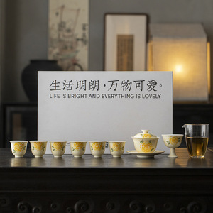 万物可爱-栀黄蔷吹-福灵盖碗套组