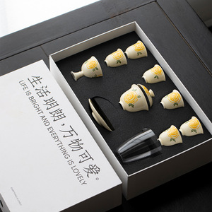 墨己万物可爱日式手绘栀黄蔷吹粉引茶具套组功夫茶具家用礼盒整套