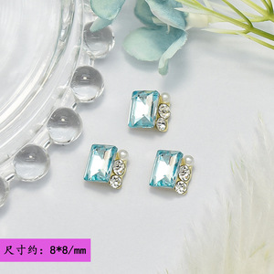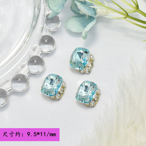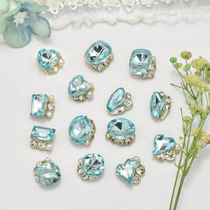 网红浅蓝色水晶堆钻美甲饰品爆款超闪鸽子蛋歪桃心肥方立体指甲钻