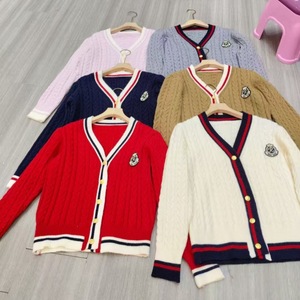 女复古学院风V领撞色针织开衫2025秋冬新款洋气显瘦麻花毛衣外套