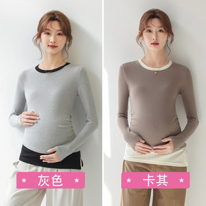【一件代发】孕妇打底衫外穿长袖上衣怀孕期内搭t恤秋孕期秋衣672