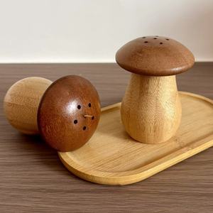 原木蘑菇牙签筒牙签收纳牙签盒牙签罐创意黑胡桃木复古摆件中古风